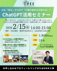 今後もTREE高崎では、皆さまのお仕事や学習に役立つセミナー・企画を定期的に実施していく予定です。