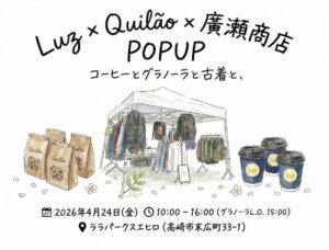 Luzのこだわりのコーヒー、Quilãoの身体に優しいグラノーラ、そして廣瀬商店のグッドデザインな古着。